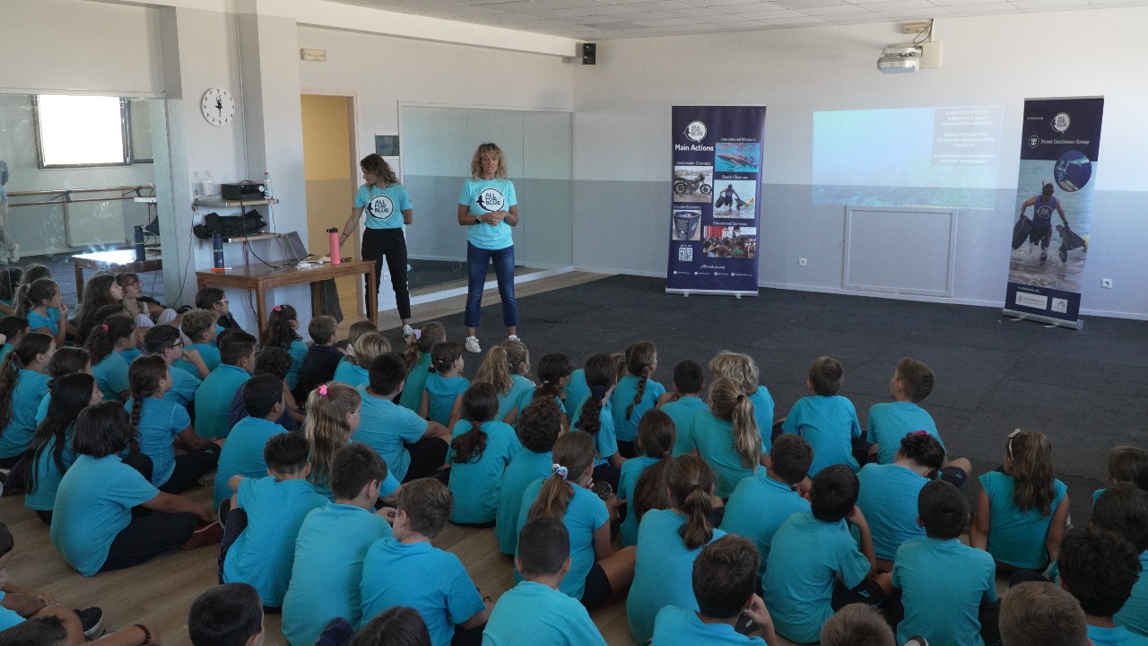 We began our day with educational seminars at the private school “Sygchroni Paideia”, where 185 primary school students participated. The students learned about marine biodiversity, the dangers of plastic pollution, and practical ways in which they themselves can contribute to protecting the sea.
