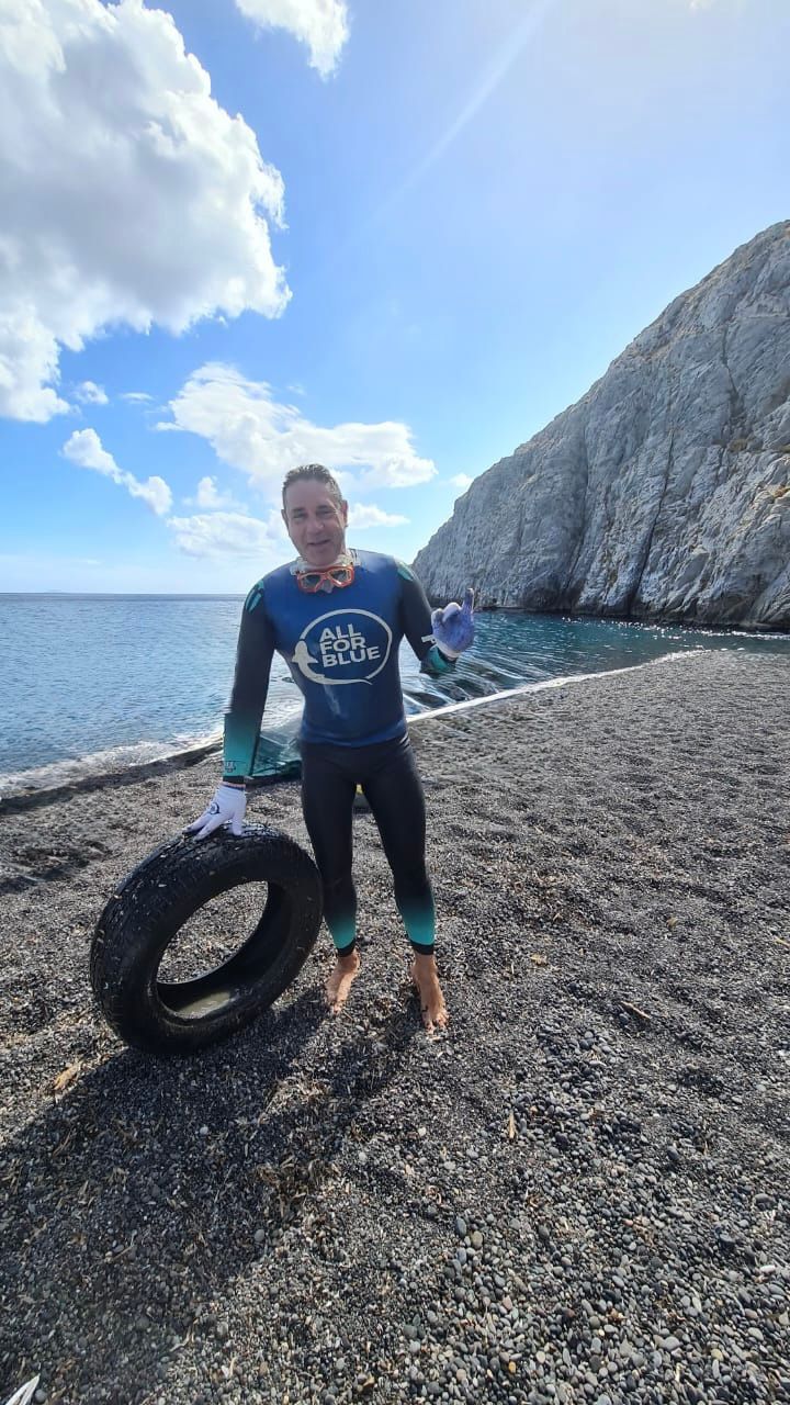 The cleanup was carried out using All For Blue reusable gloves and bags, following our zero waste protocol, while the underwater cleanup was performed by our certified diving team.